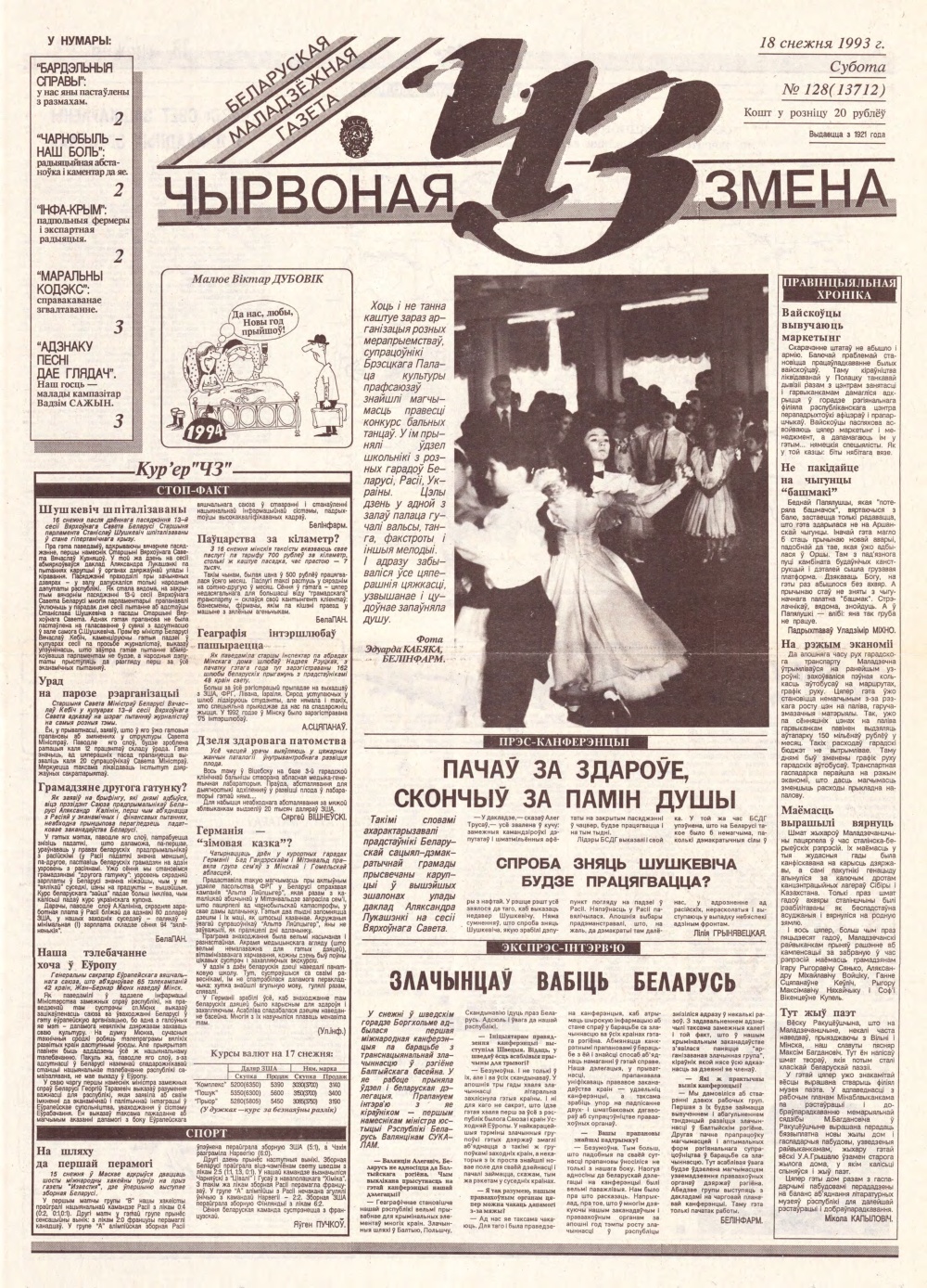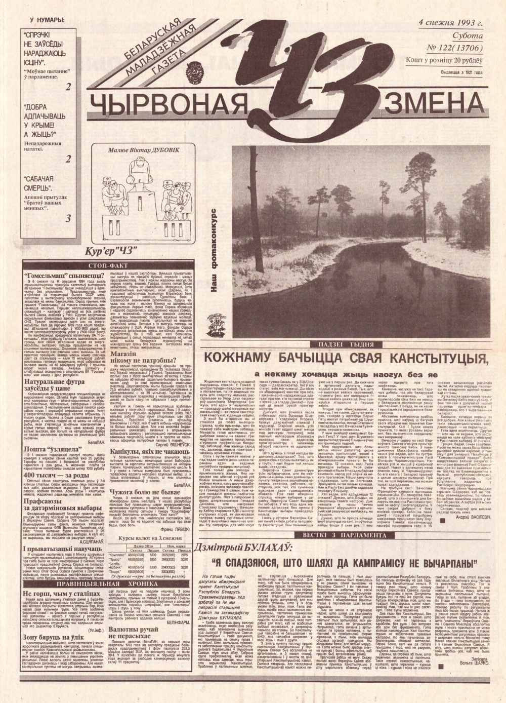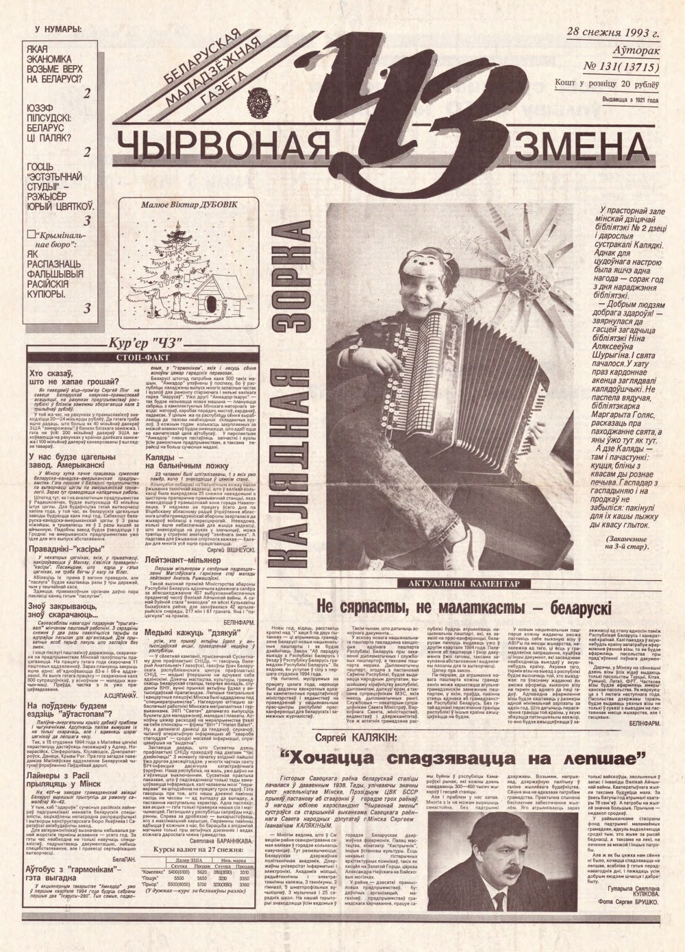 «Народная газета» — орган Вярхоўнага Савета Рэспублікі Беларусь. Выдавец: Адкрытае акцыянернае таварыства Народная газета. Выходзіць штодзённа, акрамя нядзелі і панядзелка, 250 разоў у год. Выдаецца з кастрычніка 1990 года на беларускай і рускай мовах. З 1990 па 1995 год пасаду галоўнага рэдактара «Народнай газеты» займаў Іосіф Сярэдзіч. З мая 1990 па студзень 1996 — дэпутат Вярхоўнага Савета XII склікання. Выданне займала ўмераную цэнт... Болей »