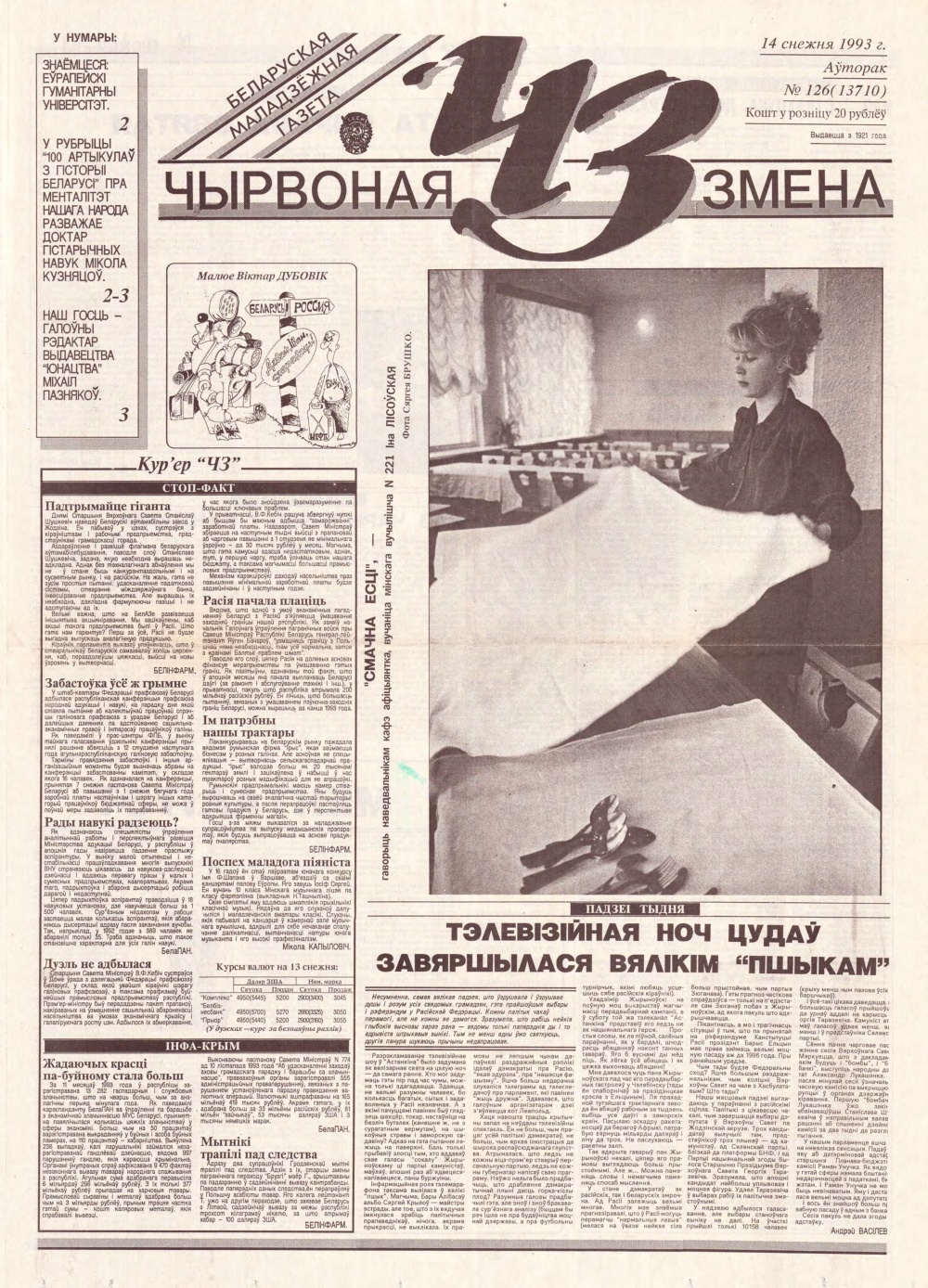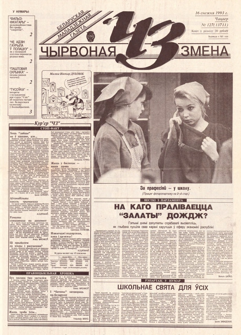 «Чырвоная змена» — беларуская маладзёжная газета. У 1921—2002 гадах з’яўлялася самастойным выданнем. З 2002 года дадатак да газеты «Звязда». З «Чырвонай зменай» ахвотна супрацоўнічаў Уладзімір Караткевіч, тут апублікаваны многія яго вершаваныя творы і эсэ: «Сплятайце рукі», «У тую ноч», «Як стажары ў небе заззялі», «Твой зорны шлях». На старонках газеты была апублікавана і аповесць Васіля Быкава «Жураўліны крык». Болей »