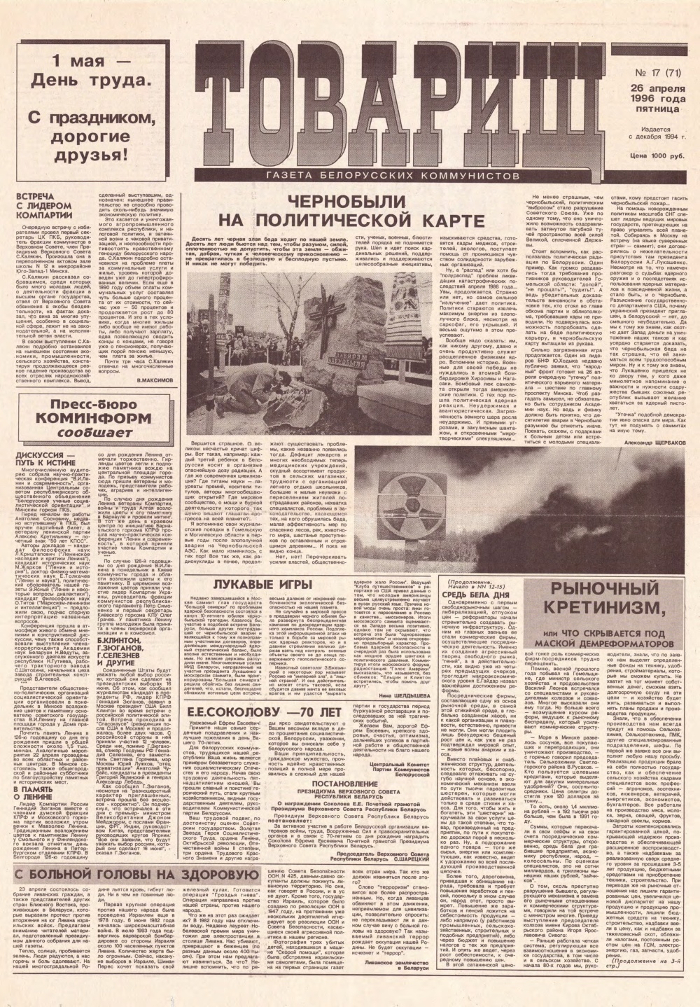 «Свабодныя прафсаюзы» — выдаецца з лістапада 1993 года на беларускай і рускай мовах. Заснавзльнікі: Беларускі кангрэс дэмакратычных прафсаюзаў. Рукапісы не рэцэнзуюцца і не вяртаюцца. Рэдакцыя можа друкаваць артыкулы ў парадку абмеркавання, не падзяляючы пункту гледжання аўтара. Болей »