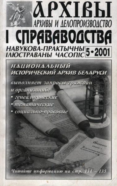 Журнал "Архівы і справаводства" ("Архивы и делопроизводство") учрежден 7 апреля 1998 г. решением собрания соучредителей, в состав которых вошли Государственный комитет по архивам и делопроизводству Республики Беларусь, Институт истории Национальной академии наук Беларуси и Белорусский научно-исследовательский институт документоведения и архивного дела. Одновременно был утвержден Устав редакции.19 мая 1998 г. журнал зарегистрирован Минис... Болей »