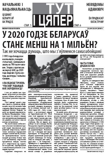 У 2020 годзе беларусаў стане менш на 1 мільён? Так не хочацца думаць, што мы з’яўляемся самазабойцамі. З 1993 года беларускае насельніцтва, паводле статыстыкі, зменшылася амаль на 700 тысяч чалавек. Згодна з прагнозам экспертаў ААН, да 2020 года людскія страты могуць дасягнуць 1 мільёна чалавек… І гэта не нейкія там страшылкі ці фантазіі распаленага розуму пэўных вучоных. Гэта абсалютна рэальная перспектыва. “Тут і цяпер” адной з першых удалося атрымаць інфармацыю, якую ўсе апошнія гады старанна збіраў Інстытут радыяцыйнай бяспекі “Белрад”. Ім доўгі час кіраваў вядомы вучоны Васіль Несцярэнка. У мінулым годзе ён сышоў з жыцця, але матэрыялы даследаванняў яго децішча засталіся. І яны не могуць не ўражваць. “На экасістэмнае небяспечнае сучаснае становішча ў здароўі нацыі паказваюць: рост дзіцячай смяротнасці, павелічэнне колькасці нараджэння дзяцей з малой вагой, зніжэнне функцыянальных магчымасцей арганізма больш чым у 2/3 школьнікаў, скарачэнне працягласці жыцця, значны рост смяротнасці ад сардэчна-сасудзістай, цэрэбральнай і анкалагічнай паталогіі ў маладым узросце”.