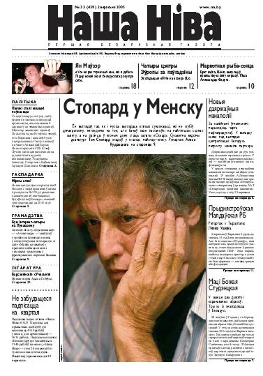 Стопард у Менску. Ён выглядаў так, як і мусіць выглядаць клясык сучаснасьці, які не згубіў дэмакратызму, нягледзячы на тое, што бачыў свае пастаноўкі на найлепшых сцэнах сьвету, а на палічцы ў ягоным доме стаіць залаты «Оскар». Сусьветна вядомы драматург Том Стопард зладзіў у сталіцы майстар-клясу. Апрануты ў блакітныя джынсы ды нябеснага колеру кашулю Том Стопард сядзеў за сталом у адным са сталічных клюбаў перад некалькімі тузінамі зацікаўленых вачэй. Акторкі, якія толькі што адыгралі п’есу «Псыхоз 4.48», таксама паселі на зэдлікі ды прыціхлі, пацягваючы глінтвэйн. Трымаючы цыгарэту левай рукой, брытанскі драматург выпускаў дым у столь, устрэсваючы ўскалмачанымі валасамі зь сівізной. Пачынаючы размову, Стопард павольна пацірае рукі, як чалавек, які жадае ўзяцца за справу, што захапляе. Зрэшты, так і было — драматург, які прыехаў у Беларусь на запрашэньне праекту «Свабодны тэатар», меўся правесьці ў сталіцы майстар-клясу для сваіх беларускіх калегаў. Яму самому, дарэчы, ня дужа спадабалася азначэньне «майстар-кляса» — ён палічыў за лепшае назваць сустрэчу дыскусіяй. Стопард, які ня верыць у культурную герархію, жадаў гутарыць не пра тое, што ёсьць добрым тэатрам, а пра ролю тэатру для грамадзтва.