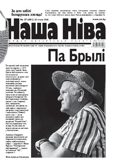 Па Брылі. Ён прыняў свой жыцьцёвы хрост як марпех, у 1939 годзе, пад Гдыняй. Янка Брыль быў апошнім з тьгх пісьменьнікаў стагодзьдзя, на вачах якіх сьвет руйнаваўся і паўставаў наноў: ягоны жыцьцёвы досьвед ахопліваў увесь беларускі XX век, з вайною і жыцьцём пад Полыпчай уключна. Ён пайшоў у іншы сьвет як неаспрэчны аўтарытэт беларусаў. Ён быў маральным эталёнам, адным з тых Сакратаў якія, паміраючы, застаюцца, пакідаюць па сабе дарогу: маральную дактрыну, узор паводзінаў і мысьленьня. Пайшоў адзін з нас — ён да апошняга свайго дня ахвяраваў грошы на выданьне "Нашай Нівы". Калі вы атрымаеце гэты нумар, ён ужо ляжа на вечны спачын на могілках у Калодзішчах.