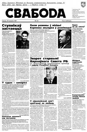 Свабода - самая масавая незалежная газэта ў Беларусі 1990-х гадоў. Выдавалася з 25 сакавіка 1990 па 1997 ў Менску. Газэта асьвятляла пытаньні грамадзка-палітычнага, эканамічнага, культурнага і духоўнага жыцьця Беларусі, знаёміла чытачоў з міжнароднымі падзеямі, друкавала матэрыялы па гісторыі Беларусі. Рэдакцыя выданьня стаяла на нацыянальна-дэмакратычных пазыцыях, крытычна адносілася да дзеючых на Беларусі органаў улады. Рэдакцыя лічыл... More »