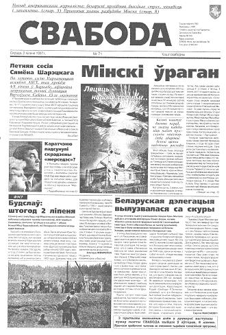 Свабода - самая масавая незалежная газэта ў Беларусі 1990-х гадоў. Выдавалася з 25 сакавіка 1990 па 1997 ў Менску. Газэта асьвятляла пытаньні грамадзка-палітычнага, эканамічнага, культурнага і духоўнага жыцьця Беларусі, знаёміла чытачоў з міжнароднымі падзеямі, друкавала матэрыялы па гісторыі Беларусі. Рэдакцыя выданьня стаяла на нацыянальна-дэмакратычных пазыцыях, крытычна адносілася да дзеючых на Беларусі органаў улады. Рэдакцыя лічыл... Болей »
