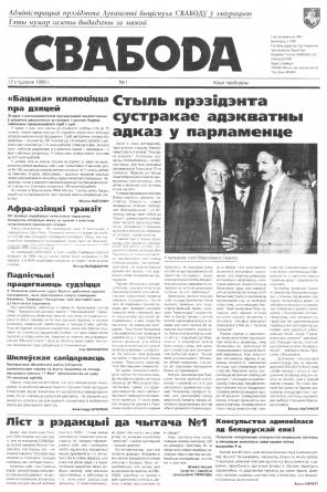 Свабода - самая масавая незалежная газэта ў Беларусі 1990-х гадоў. Выдавалася з 25 сакавіка 1990 па 1997 ў Менску. Газэта асьвятляла пытаньні грамадзка-палітычнага, эканамічнага, культурнага і духоўнага жыцьця Беларусі, знаёміла чытачоў з міжнароднымі падзеямі, друкавала матэрыялы па гісторыі Беларусі. Рэдакцыя выданьня стаяла на нацыянальна-дэмакратычных пазыцыях, крытычна адносілася да дзеючых на Беларусі органаў улады. Рэдакцыя лічыл... Болей »