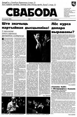 Свабода - самая масавая незалежная газэта ў Беларусі 1990-х гадоў. Выдавалася з 25 сакавіка 1990 па 1997 ў Менску. Газэта асьвятляла пытаньні грамадзка-палітычнага, эканамічнага, культурнага і духоўнага жыцьця Беларусі, знаёміла чытачоў з міжнароднымі падзеямі, друкавала матэрыялы па гісторыі Беларусі. Рэдакцыя выданьня стаяла на нацыянальна-дэмакратычных пазыцыях, крытычна адносілася да дзеючых на Беларусі органаў улады. Рэдакцыя лічыл... Болей »