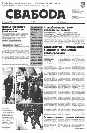 Свабода - самая масавая незалежная газэта ў Беларусі 1990-х гадоў. Выдавалася з 25 сакавіка 1990 па 1997 ў Менску. Газэта асьвятляла пытаньні грамадзка-палітычнага, эканамічнага, культурнага і духоўнага жыцьця Беларусі, знаёміла чытачоў з міжнароднымі падзеямі, друкавала матэрыялы па гісторыі Беларусі. Рэдакцыя выданьня стаяла на нацыянальна-дэмакратычных пазыцыях, крытычна адносілася да дзеючых на Беларусі органаў улады. Рэдакцыя лічыл... Болей »
