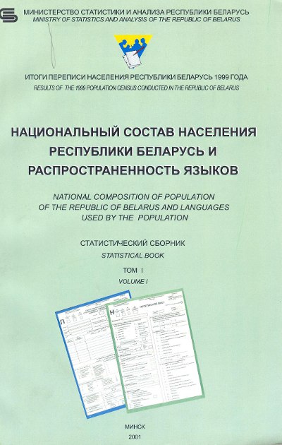 Статистический сборник "Национальный состав населения Республики Беларусь" публикуется в двух томах. В первом томе публикуются данные переписи населения Республики Беларусь 1999 года о национальном составе населения по республике, областям, городам областного значения и административным районам, а также о распределении населения по родному языку, языку, на котором обычно разговаривают дома и другому языку, которым свободно владеют. Данные по республике, областям Минскому горсовету приводятся в сопоставлении с соответствующими показателями переписей 1959, 1970, 1979 и 1989 гг. В целях сопоставимости итоги прошлых переписей пересчитаны в административно-территориальных границах переписи населения 1999 года. По итогам переписи населения 1999 года в Республике Беларусь зарегистрировано более 100 национальностей.