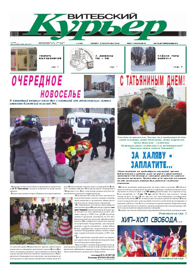 Уважаемые читатели газеты «ВИТЕБСКИЙ КУРЬЕР», информационные, познавательные издания, администрации интернет-ресурсов, масс-медиа, перед вами электронная версия номера нашей газеты, открытого для свободного доступа. При перепечатке, ссылка на нашу газету или сайт обязательна! Все авторские права защищены. Наша редакция знакомится с письмами читателей, не вступая в переписку. Рукописи не рецензируются и не возвращаются. Наша редакция не ... Болей »