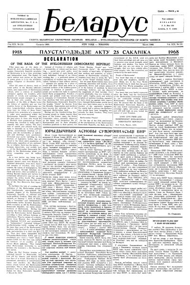„Беларус” – беларускамоўная штомесячная газэта выдаецца зь верасьня 1950 году ў Нью-Ёрку Беларуска-Амэрыканскім Задзіночаньнем. Друкуе матэрыялы з жыцьця беларускае эміграцыі, аналітычныя публікацыі пра сытуацыю ў Беларусі, нарысы па беларускай гісторыі, творы беларускіх пісьменьнікаў-эмігрантаў, успаміны. З газэтай супрацоўнічалі такія дзеячы эміграцыі, як: Антон Адамовіч, Натальля Арсеньнева, Уладзімер Глыбінны, Яніна Каханоўская, Фра... Болей »