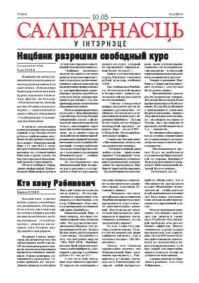 Валютный кризис ждет героев, способных его разрешить. Похоже, дело в том, что никому не хочется брать на себя ответственность за девальвацию. «Салідарнасць» решила выяснить, кто должен разруливать ситуацию. Позиция Совета министров заключается в том, что девальвация необходима. Об этом неоднократно говорили высокопоставленные правительственные чиновники. Однако решения, касающиеся курса рубля, Совмин принять не может. Давеча министр экономики Николай Снопков сказал по этому поводу: «В государственном управлении есть вопросы компетенции, кто кому Рабинович. Я не могу комментировать позицию и действия Нацбанка».