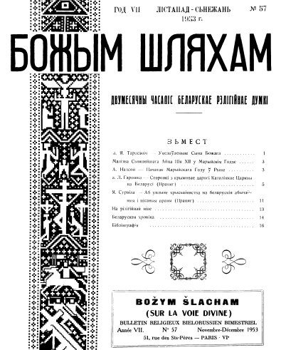 „Божым Шляхам” – часопіс беларускае рэлігійнае думкі выдаваўся беларускім грэка-каталіцкім духавенствам у Парыжы ў 1947-1957 гадох і ў Лёндане ў гадох 1957-1980 на беларускай мове. Выйшаў 151 нумар. Рэдактарамі й аўтарамі бальшыні публікацыяў былі айцы: Часлаў Сіповіч, Леў Гарошка, Язэп Германовіч, Аляксандар Надсан. Асьвятляў пытаньні гісторыі хрысьціянства, рэлігійных адносінаў у Беларусі ды ўзаемазалежнасьці рэлігіі, культуры й нацыянальнае сьвядомасьці ў разьвіцьці беларускага народу. Асэнсоўвалася роля хрысьціянскіх асьветнікаў, царкоўных дзеячаў, заснавальнікаў айчыннага кнігадрукаваньня. Друкаваліся творы беларускіх пісьменьнікаў. Пад рубрыкай Беларуская хроніка падаваліся весткі пра грамадзка-палітычную сытуацыю ў БССР (з акцэнтам на праявы моўнай асыміляцыі), пра рэлігійна-царкоўнае жыцьцё Беларусі, пра дзейнасьць беларускіх асяродкаў на эміграцыі, у тым ліку Беларускай Бібліятэкі й Музэю імя Ф. Скарыны ў Лёндане, Англа-Беларускага Навуковага Таварыства, Згуртаваньня Беларусаў Вялікабрытаніі (Н. Баршчэўская, Беларуская эміграцыя — абаронца роднае мовы)