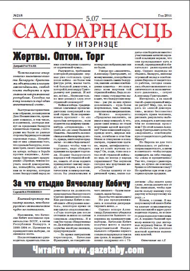 Чем только не «торговали» нынешние власти Беларуси: братскими объятиями и политзаключёнными, свободными выборами и признанием непризнанных республик. Сегодня на кону появился ещё один аппетитный «лот». Выступая на торжественном собрании, посвященном Дню Независимости, президент помянул, в том числе, и политиков, «которые живут за пределами Беларуси в известных странах, с которыми мы были по разные стороны баррикад в те лихие сороковые годы». Потребовав от них «уважения того, что сделали белорусы, положив треть своего населения на алтарь победы в борьбе против нацизма», Александр Григорьевич предупредил: «Прежде, чем нас поучать некой демократии, вы, пожалуйста, заплатите нам за те жертвы, которые понес белорусский народ во имя освобождения планеты от коричневой чумы».