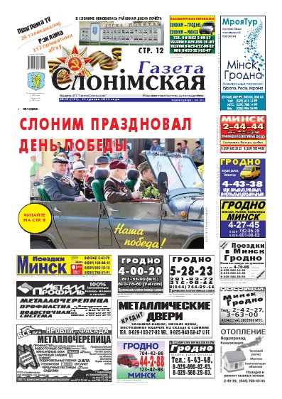 «Газета Слонімская» (скарочана «ГС», польск. Gazeta Słonimska) — беларуская штотыднёвая грамадска-палітычная газета, якая выходзіць у Слоніме. Упершыню выйшла ў 1938 годзе на польскай мове (ўсяго выйшла 4 нумары). «Газета Слонімская» была адноўленая ў 1997 годзе як незалежнае грамадска-палітычнае выданне на рускай і беларускай мовах. Яе заснавальнікам і галоўным рэдактарам стаў Віктар Валадашчук. Першы нумар адроджанай «Газеты Слонімска... Болей »