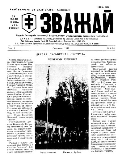 «Зважай», беларускі штоквартальны часопіс. Заснаваны ў 1974 у Таронта Аб'яднаньнем Беларускіх Вэтэранаў, існаваў да 1998. Рэдактар — К. Акула. Друкаваў матар'ялы зь беларускае гісторыі, пытаньняў вайсковае гісторыі Беларусі, мэмуары, літаратурныя творы. Асьвятляў падзеі ў Беларусі, эмігранцкае жыцьцё. More »