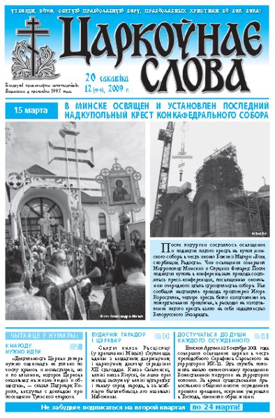 Белорусская православная газета «Царкоўнае слова» издаётся с апреля 1992 года. Если вы захотите подписаться на печатную газету «Царкоўнае слова», то в любом почтовом отделении Республики Беларусь оформите бланк, указав наш подписной индекс: 63130.