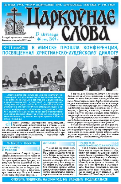 Белорусская православная газета «Царкоўнае слова» издаётся с апреля 1992 года. Если вы захотите подписаться на печатную газету «Царкоўнае слова», то в любом почтовом отделении Республики Беларусь оформите бланк, указав наш подписной индекс: 63130.