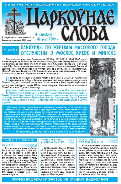 Белорусская православная газета «Царкоўнае слова» издаётся с апреля 1992 года. Если вы захотите подписаться на печатную газету «Царкоўнае слова», то в любом почтовом отделении Республики Беларусь оформите бланк, указав наш подписной индекс: 63130.