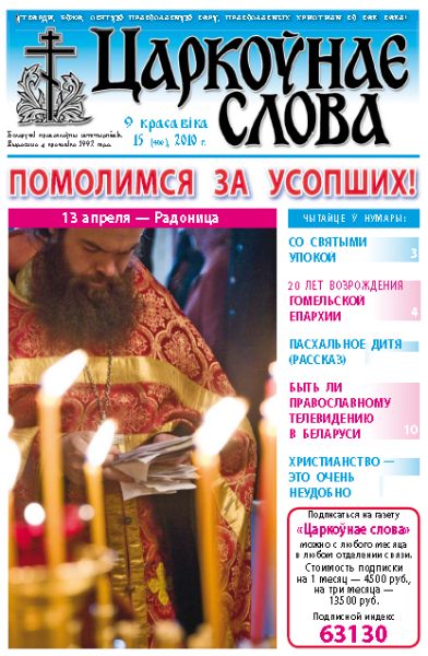 Белорусская православная газета «Царкоўнае слова» издаётся с апреля 1992 года. Если вы захотите подписаться на печатную газету «Царкоўнае слова», то в любом почтовом отделении Республики Беларусь оформите бланк, указав наш подписной индекс: 63130.