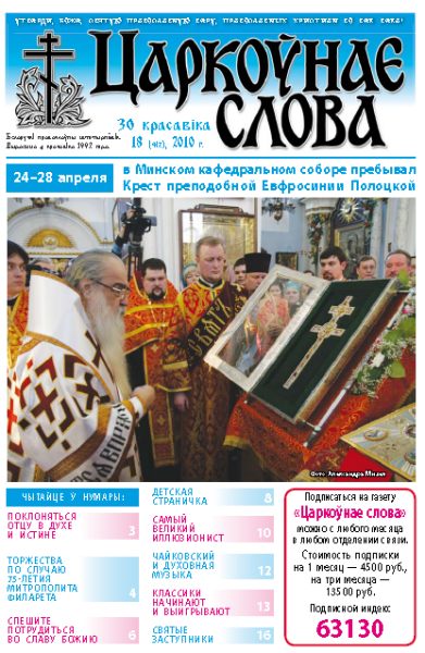 Белорусская православная газета «Царкоўнае слова» издаётся с апреля 1992 года. Если вы захотите подписаться на печатную газету «Царкоўнае слова», то в любом почтовом отделении Республики Беларусь оформите бланк, указав наш подписной индекс: 63130.