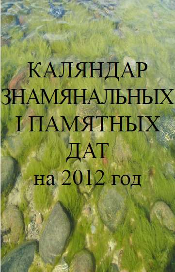 “Каляндар знамянальных і памятных дат на 2012 год” змяшчае асноўныя раздзелы: 1. “Международные десятилетия и годы”, “Международные дни и недели”; 2. “Даты беларускага і краязнаўчага календара”; 3. “Даты российского и зарубежного календаря”, “Книги-юбиляры”. У першым раздзеле пералічаны міжнародныя дзесяцігоддзі і гады, якія аб’яўлены і адзначаюцца па лініі ААН, а таксама розныя сусветныя і міжнародныя дні, святы і мерапрыемствы. Другі раздзел уключае матэрыялы пра юбілеі рэспубліканскага значэння ў галіне літаратуры і мастацтва; юбілеі значных падзей, дзяржаўныя, агульнарэспубліканскія, рэлігійныя святы, памятныя даты; юбілеі дзеячаў, жыццё або дзейнасць якіх звязана з Брэстчынай. Трэці раздзел уключае найбольш значныя даты расійскага і сусветнага календара: юбілеі паэтаў, пісьменнікаў, літаратуразнаўцаў, а таксама найбольш вядомых палітычных і грамадскіх дзеячаў.