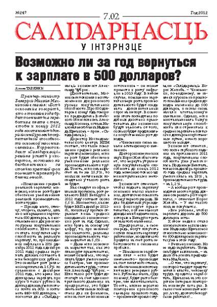 Премьер-министр Беларуси Михаил Мясникович заявил: «Есть основания говорить, что в течение года будет повышаться заработная плата с тем, чтобы к концу 2012 года восстановить докризисный уровень покупательной способности основной массы населения». Корреспондент «Салідарнасці» решила узнать у экспертов, возможно ли безболезненно за столько краткий срок повысить зарплату до былых высот.
