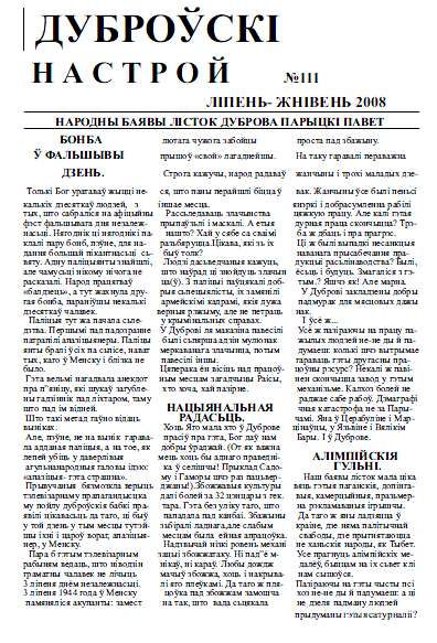БОНБА Ў ФАЛЬШЫВЫ ДЗЕНЬ. Толькі Бог уратаваў жыцці некалькіх дзесяткаў людзей, з тых, што сабраліся на афіцыйны фэст фальшывага дня незалежнасьці. Нягоднік ці нягоднікі паклалі пару бонб, пэўне, для надання большай пікантнасьці сьвяту. Адну паліцыянты знайшлі, але чамусьці нікому нічога не расказалі. Народ працягваў «балдзець», а тут жахнула другая бонба, параніўшы некалькі дзесяткаў чалавек.