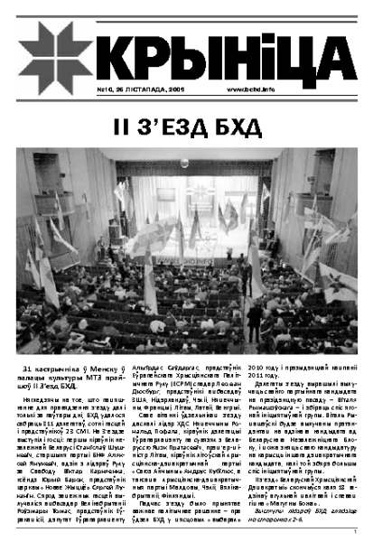 Выйшаў 32-ы нумар газэты "Крыніца" – партыйнага бюлетэню "Беларускай Хрысьціянскай Дэмакратыі". Нумар прысьвечаны ўстаноўчым сходам Маладых Хрысціянскіх эмакратаў і Хрысціянскіх Дэмакратаў Віцебшчыны, праблеме вызвалення палітвязняў, асвятленьню дзейнасьці БХД за апошні час і шмат іншых цікавых матэрыялаў. Болей »