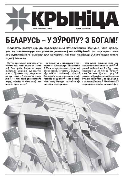 Выйшаў 32-ы нумар газэты "Крыніца" – партыйнага бюлетэню "Беларускай Хрысьціянскай Дэмакратыі". Нумар прысьвечаны ўстаноўчым сходам Маладых Хрысціянскіх эмакратаў і Хрысціянскіх Дэмакратаў Віцебшчыны, праблеме вызвалення палітвязняў, асвятленьню дзейнасьці БХД за апошні час і шмат іншых цікавых матэрыялаў. Болей »