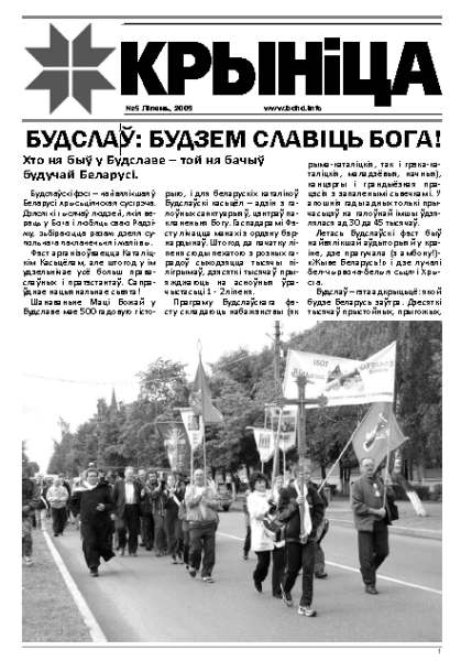 Прапануем вашай увазе новы нумар газеты Беларускай Хрысціянскай Дэмакратыі "Крыніца". У ім вы можаце знайсці матэрыялы да 95-й гадавіны ўтварэння БХД, агляд дзейнасці, сустрэч і ініцыятыў рэгінальных арганізацый БХД, расклад сёлетніх мерапрыемстваў у Будславе і іншае. Болей »
