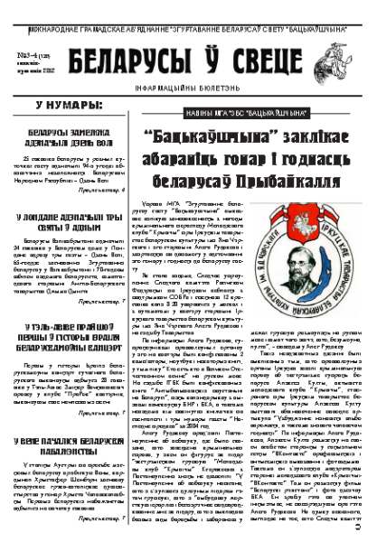 Управа МГА “Згуртаванне беларусаў свету “Бацькаўшчына” выказвае вялікую занепакоенасць з нагоды крымінальнага пераследу Моладзевага клуба “Крывічы” пры Іркуцкім таварыстве беларускай культуры імя Яна Чэрскага і яго старшыні Алега Рудакова і звяртаецца па дапамогу ў адстойванні яго гонару і годнасці да беларусаў свету. Як стала вядома, Следчае ўпраўленне Следчага камітэта Расійскай Федэрацыі па Іркуцкай вобласці з падтрымкай СОБРа і спецназа 12 красавіка каля 8.20 уварваліся ў масках і з аўтаматамі ў кватэру старшыні Іркуцкага таварыства беларускай культуры імя Яна Чэрскага Алега Рудакова і на сядзібу Таварыства.