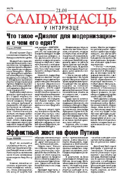 Как прошел разговор с начальником милиции по поводу вывешенных на домах флагах. — На сегодняшний день вот эта символика, которая вывешивается на частных домах, будет расценена как одиночный пикет, — заявил начальник Воложинского РОВД Дмитрий Веревчик во время прямой линии в ответ на вопрос о том, каким законом руководствуются, когда бел-чырвона-белый флаг на крыше или стене частного строения приравнивают к публичному высказыванию гражда... Болей »