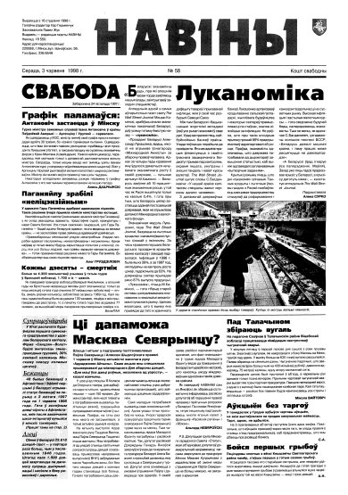 Навіны — грамадзка-палітычная газэта, якая выдавалася пад гэтай назвай з 1998 па верасень 1999 ў Менску на беларускай мове. Заснавальнік – Павал Жук, галоўны і першы рэдактар – Ігар Гермянчук. 24 лістапада 1997 году Вышэйшы гаспадарчы суд зьліквідаваў газэту «Свабода». З 16 студзеня 1998 году «Свабода» пачала выходзіць пад назвай «Навіны». 24 верасьня 1999 году суд задаволіў зыск Дзяржаўнага сакратара Рады Бясьпекі Віктара Шэймана да га... Болей »