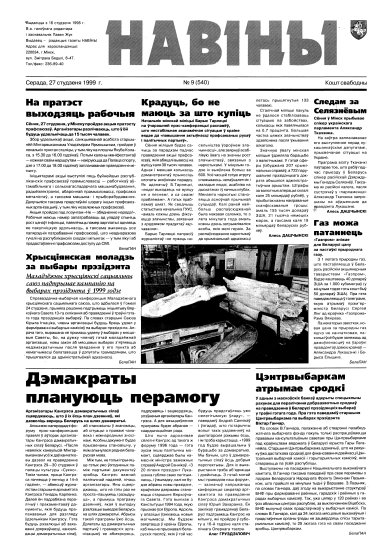 Навіны — грамадзка-палітычная газэта, якая выдавалася пад гэтай назвай з 1998 па верасень 1999 ў Менску на беларускай мове. Заснавальнік – Павал Жук, галоўны і першы рэдактар – Ігар Гермянчук. 24 лістапада 1997 году Вышэйшы гаспадарчы суд зьліквідаваў газэту «Свабода». З 16 студзеня 1998 году «Свабода» пачала выходзіць пад назвай «Навіны». 24 верасьня 1999 году суд задаволіў зыск Дзяржаўнага сакратара Рады Бясьпекі Віктара Шэймана да га... Болей »