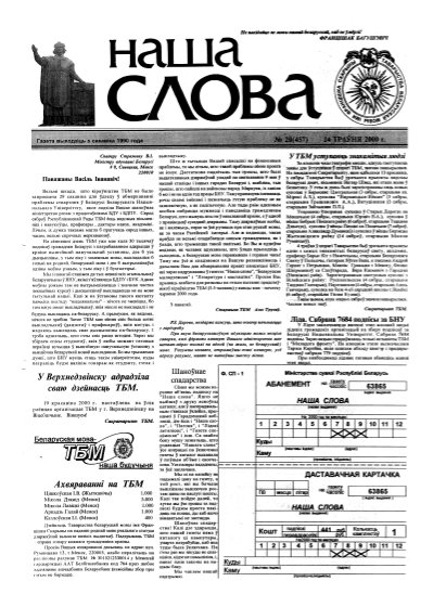 Газета “Наша слова” - газета Грамадскага аб’яднання “ТБМ імя Ф. Скарыны”, якое знаходзіцца на пярэднім краі барацьбы за нацыянальнае адраджэнне беларускага этнасу. Газета заснавана ў сакавіку 1990 года і да 1997 года выходзіла ў Менску. З лістапада 1997 года газета больш за 9 гадоў выдавалася Лідскай гарадской арганізацыя ГА “ТБМ імя Ф. Скарыны”. З 1 лютага 2007 года выдаўцом газеты “Наша слова” з’яўляецца Установа інфармацыі “Выдавецкі дом ТБМ”, зарэгістраваная ў Лідзе Гарадзенскай вобласці. Рэдактар газеты з 1997 года Станіслаў Суднік, сябар Беларускай асацыяцыі журналістаў і Саюза беларускіх пісьменнікаў. У рэдкалегію газеты ўваходзяць знакавыя людзі Беларусі - навукоўцы, пісьменнікі, грамадскія актывісты. Газета друкуе афіцыйную хроніку дзейнасці Таварыства беларускай мовы імя Ф. Скарыны і асвятляе дзейнасць іншых грамадскіх арганізацый дэмакратычнага кірунку а таксама асноўныя падзеі культурнага і грамадскага жыцця краіны. Сярод аўтараў не адзін дзесятак дактароў і кандыдатаў навук, здараюцца акадэмікі. Газета з’яўляецца пілотнай структурай у арганізацыі шматлікіх кампаній па зборы подпісаў з самай рознай нагоды, друкуе звароты, бланкі, а грамадзяне збіраюць подпісы і атакуюць уладу ці то па пытаннях мовы, па пытаннях адукацыі, культуры, ці то па пытаннях назову і пераназову вуліцаў. Гэтыя кампаніі ТБМ вядзе бесперапынна, трымаючы ўладныя структуры пад пастаянным ціскам і дабіваючыся перманентных поспехаў па розных кірунках. Усё гэта без газеты было б немагчыма.