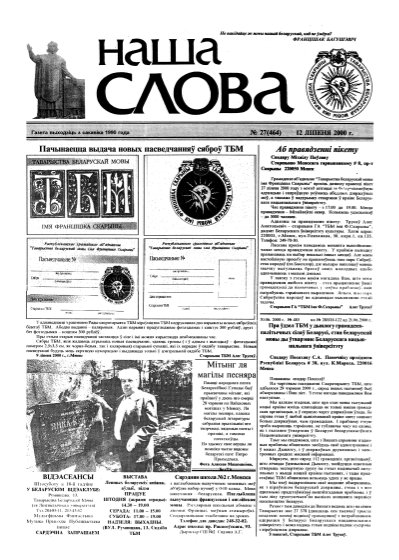 Газета “Наша слова” - газета Грамадскага аб’яднання “ТБМ імя Ф. Скарыны”, якое знаходзіцца на пярэднім краі барацьбы за нацыянальнае адраджэнне беларускага этнасу. Газета заснавана ў сакавіку 1990 года і да 1997 года выходзіла ў Менску. З лістапада 1997 года газета больш за 9 гадоў выдавалася Лідскай гарадской арганізацыя ГА “ТБМ імя Ф. Скарыны”. З 1 лютага 2007 года выдаўцом газеты “Наша слова” з’яўляецца Установа інфармацыі “Выдавецкі дом ТБМ”, зарэгістраваная ў Лідзе Гарадзенскай вобласці. Рэдактар газеты з 1997 года Станіслаў Суднік, сябар Беларускай асацыяцыі журналістаў і Саюза беларускіх пісьменнікаў. У рэдкалегію газеты ўваходзяць знакавыя людзі Беларусі - навукоўцы, пісьменнікі, грамадскія актывісты. Газета друкуе афіцыйную хроніку дзейнасці Таварыства беларускай мовы імя Ф. Скарыны і асвятляе дзейнасць іншых грамадскіх арганізацый дэмакратычнага кірунку а таксама асноўныя падзеі культурнага і грамадскага жыцця краіны. Сярод аўтараў не адзін дзесятак дактароў і кандыдатаў навук, здараюцца акадэмікі. Газета з’яўляецца пілотнай структурай у арганізацыі шматлікіх кампаній па зборы подпісаў з самай рознай нагоды, друкуе звароты, бланкі, а грамадзяне збіраюць подпісы і атакуюць уладу ці то па пытаннях мовы, па пытаннях адукацыі, культуры, ці то па пытаннях назову і пераназову вуліцаў. Гэтыя кампаніі ТБМ вядзе бесперапынна, трымаючы ўладныя структуры пад пастаянным ціскам і дабіваючыся перманентных поспехаў па розных кірунках. Усё гэта без газеты было б немагчыма.