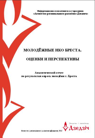 Настоящий документ представляет собой Аналитический отчет по результатам опроса молодёжи Бреста по теме «Молодёжные НКО Бреста. Оценки и перспективы». Опрос проведен в сен-тябре-октябре 2012 г. в рамках проекта, реализованного Агентством регионального развития «Дзедзич». Сбор данных осуществлен волонтёрами Агентства регионального развития «Дзедзич» посредст-вом анкетирования представителей целевой группы проекта. ЦЕЛЬ ИССЛЕДОВАНИЯ Основной целью исследования являлось получение информации о знакомстве молодёжи с дея-тельностью молодёжных НКО региона. ОБЪЕКТ ИССЛЕДОВАНИЯ Объектом исследования являлась молодёжь (16-30 лет) города Бреста.