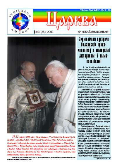 «Царква» — беларуская рэлігійная культурна-асветніцкая газета, квартальнік. Газета асвятляе жыццё грэка-каталіцкіх супольнасцяў у Беларусі і ў іншых краінах свету, змяшчае афіцыйныя дакументы Царквы, удзяляе ўвагу праблемам экуменізму і хрысціянскай еднасці, друкуе матэрыялы па гісторыі Уніяцкай Царквы і іншую рэлігійна-асветніцкую інфармацыю. Беларуская грэка-каталіцкая газета «Царква» заснавана мінскімі грэка-каталіцкімі парафіямі ў 1... Болей »