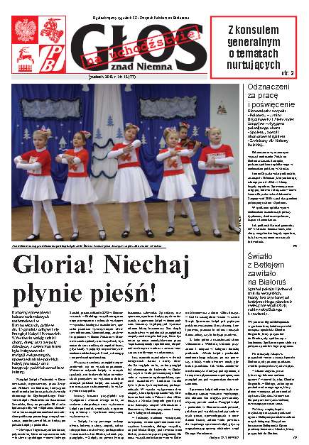 Radosny śpiew pieśni bożonarodzeniowych rozbrzmiewał w Baranowiczach, gdzie w dn. 15 grudnia odbywał się Przegląd Kolęd i Pastorałek. W festiwalu wzięły udział chóry, duety oraz zespoły dziecięce, a celem konkursu było kultywowanie tradycji świątecznych, upowszechnianie polskich kolęd, promocja oraz integracja polskich ośrodków kultury. Przegląd Kolęd i Pastorałek w Baranowiczach, organizowany przez Związek Polaków na Białorusi, tradycyjnie miał formułę konkursu, gdyż był swoistą eliminacją do Ogólnopolskiego Festiwalu Kolęd i Pastorałek im. Kazimierza Szwarlika, który na początku 2013 roku będzie się odbywał w Będzinie. Umożliwił również zespołom amatorskim i solistom publiczną prezentację swojej twórczości, popularyzował także tradycyjne polskie kolędy i pastorałki.
