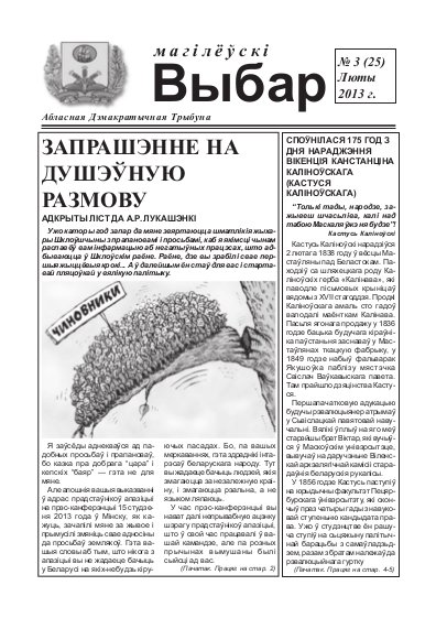 Copyright © 2013 by Магілёўскі Выбар