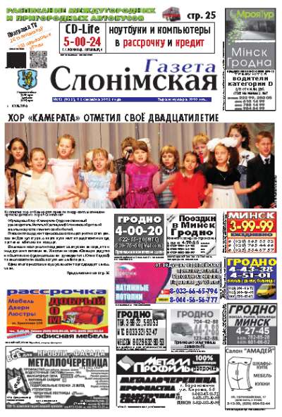 «Газета Слонімская» (скарочана «ГС», польск. Gazeta Słonimska) — беларуская штотыднёвая грамадска-палітычная газета, якая выходзіць у Слоніме. Упершыню выйшла ў 1938 годзе на польскай мове (ўсяго выйшла 4 нумары). «Газета Слонімская» была адноўленая ў 1997 годзе як незалежнае грамадска-палітычнае выданне на рускай і беларускай мовах. Яе заснавальнікам і галоўным рэдактарам стаў Віктар Валадашчук. Першы нумар адроджанай «Газеты Слонімска... Болей »