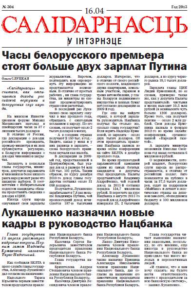 «Салідарнасць» посчитала, как отличаются доходы российской верхушки и белорусских слуг народа. На минском Инвестиционном форуме Михаил Мясникович щеголял в швейцарских часах за 37 с лишним тысяч долларов В отличие от России, где декларации о доходах российского президента, премьер-министра и их жен публикуются регулярно, в Беларуси информация о доходах чиновников закрытая.