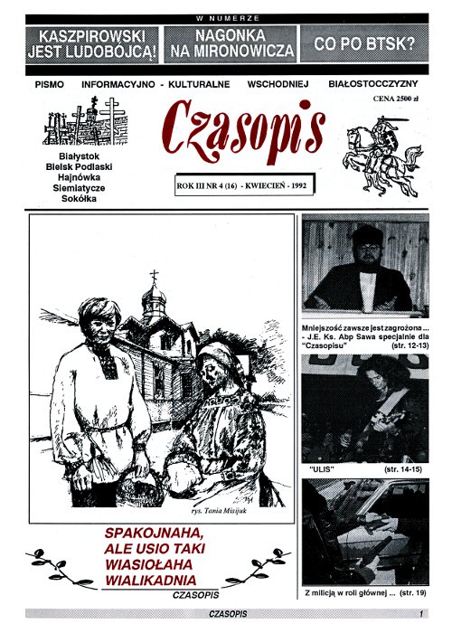 Czasopis (biał. Часопіс) – wychodzący od 1990 roku białoruski miesięcznik społeczno-kulturalny, wydawany w Białymstoku w języku polskim i białoruskim przez Stowarzyszenie Dziennikarzy Białoruskich. Redaktorem naczelnym jest Jerzy Chmielewski. Pismo dofinansowywane jest przez Ministerstwo Administracji i Cyfryzacji. Magazyn porusza kwestie istotne dla mniejszości białoruskiej zamieszkującej w Polsce. Publikuje reportaże, teksty literacki... Болей »