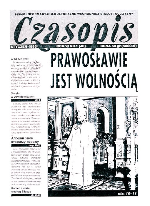Czasopis (biał. Часопіс) – wychodzący od 1990 roku białoruski miesięcznik społeczno-kulturalny, wydawany w Białymstoku w języku polskim i białoruskim przez Stowarzyszenie Dziennikarzy Białoruskich. Redaktorem naczelnym jest Jerzy Chmielewski. Pismo dofinansowywane jest przez Ministerstwo Administracji i Cyfryzacji. Magazyn porusza kwestie istotne dla mniejszości białoruskiej zamieszkującej w Polsce. Publikuje reportaże, teksty literacki... Болей »