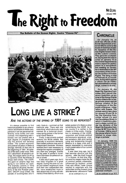 Human Rights Center "Viasna" is a non-governmental human rights organization, created in 1996 during mass protest actions of the democratic opposition in Belarus. Viasna was initially a group created to help the arrested rally participants and their families. That’s why originally Viasna had the name “Viasna-96”. On 15 June 1999 the organization was registered as the Human Rights Center "Viasna". It is a national NGO with the central of... Болей »