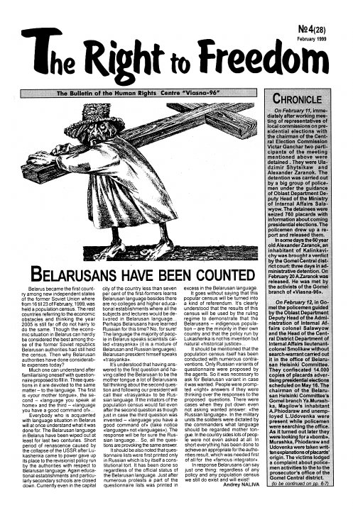 Human Rights Center "Viasna" is a non-governmental human rights organization, created in 1996 during mass protest actions of the democratic opposition in Belarus. Viasna was initially a group created to help the arrested rally participants and their families. That’s why originally Viasna had the name “Viasna-96”. On 15 June 1999 the organization was registered as the Human Rights Center "Viasna". It is a national NGO with the central of... Болей »
