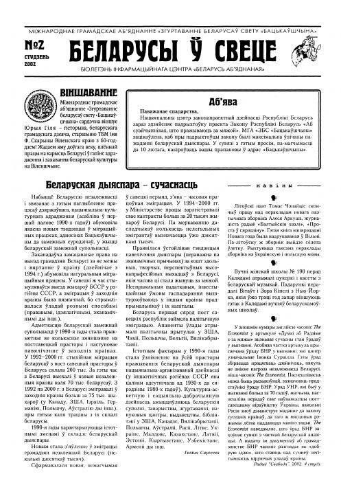 Выдавец: Міжнароднае Грамадскае Аб'яднанне Згуртаванне Беларусаў Свету Бацькаўшчына