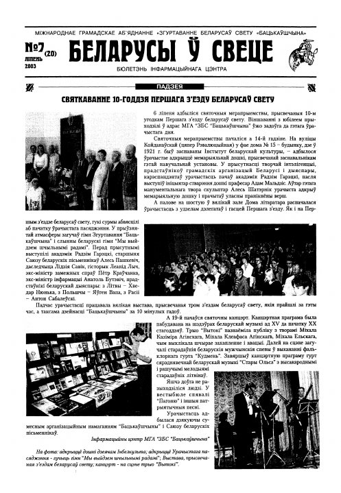 Выдавец: Міжнароднае Грамадскае Аб'яднанне Згуртаванне Беларусаў Свету Бацькаўшчына