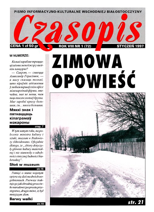 Czasopis (biał. Часопіс) – wychodzący od 1990 roku białoruski miesięcznik społeczno-kulturalny, wydawany w Białymstoku w języku polskim i białoruskim przez Stowarzyszenie Dziennikarzy Białoruskich. Redaktorem naczelnym jest Jerzy Chmielewski. Pismo dofinansowywane jest przez Ministerstwo Administracji i Cyfryzacji. Magazyn porusza kwestie istotne dla mniejszości białoruskiej zamieszkującej w Polsce. Publikuje reportaże, teksty literacki... Болей »